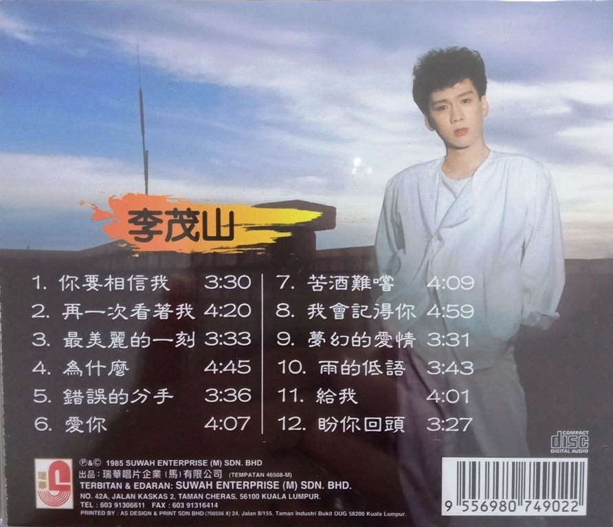 李茂山 li mao shan best songs of li mao shan 李茂山歌曲 李茂山之歌 無言的結局 遲來的愛 月光小夜曲 遊子吟 一年又一年 回頭我也不要你.