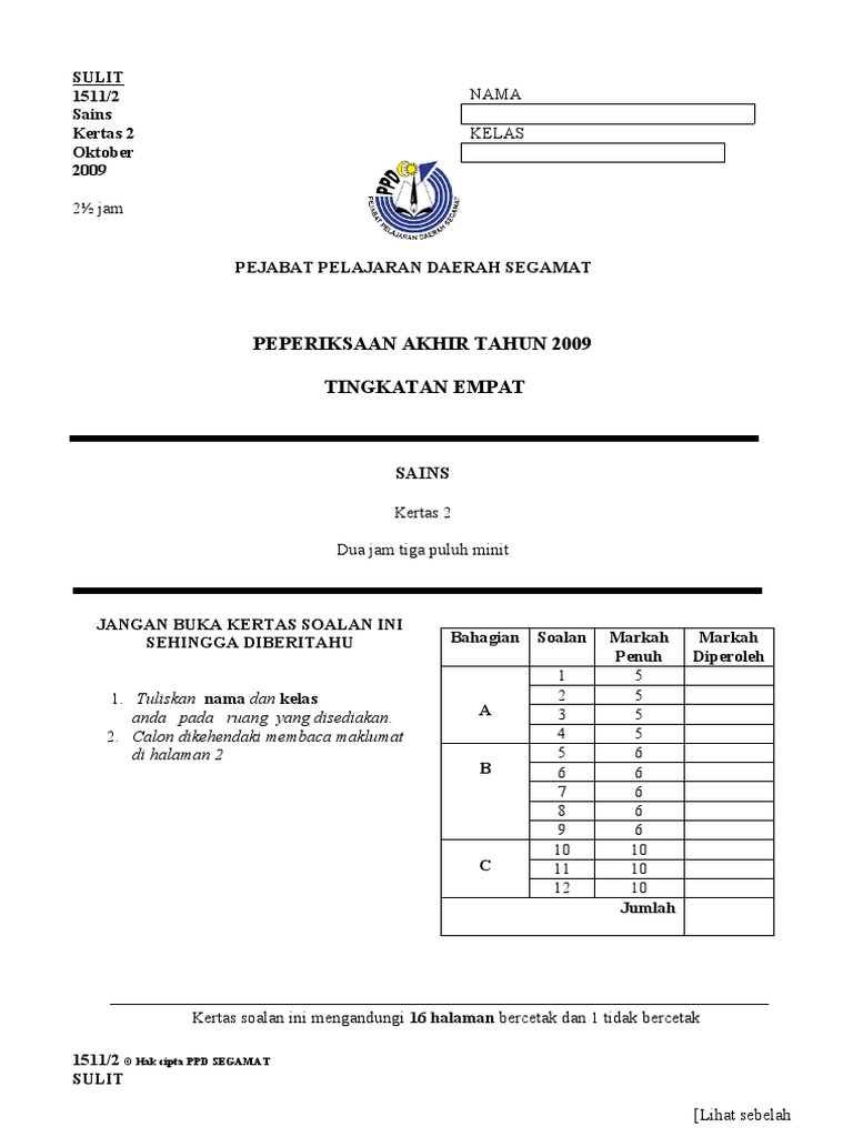 Sebelum bermula cuti sekolah, murid perlu melalui ujian/peperiksaan … Soalan sains tingkatan 4 kertas 2. Sejarah tingkatan 4 bab 2: Soalan percubaan spm (terengganu) kertas 1 + jawapan; Bahasa melayu tingkatan 4 kertas 2.