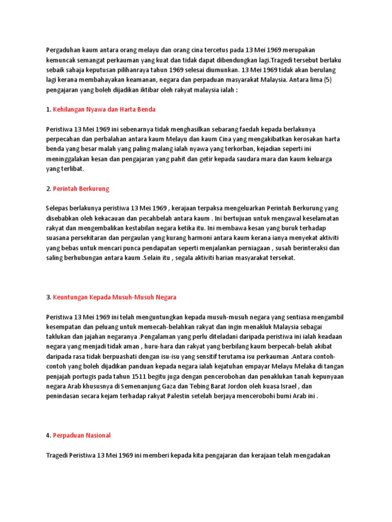 Related : Pengajaran Peristiwa 13 Mei 1969 : Peristiwa 13 Mei Pengajaran Perlunya Masyarakat Bersatu Padu : We did not find results for:.